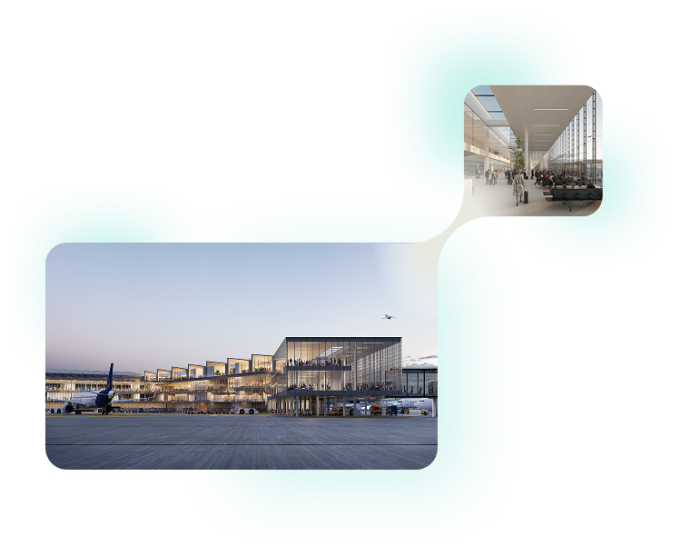The future expansion of the airport’s terminal building capacity is planned primarily by way of the completion of construction of Terminals 1 and 2, which will bring innovations to the handling process alongside new operational solutions. In particular, the infrastructure for handling passengers and long-haul flights will be significantly improved and new commercial areas will be built to increase the level of service and comfort for passengers.
